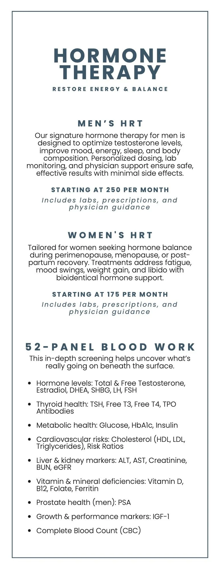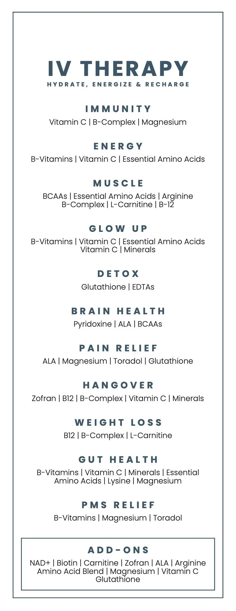 Our MenuWe offer over 207 services at our Relive Health Centers. The menu below provides an overview of our client favorites.